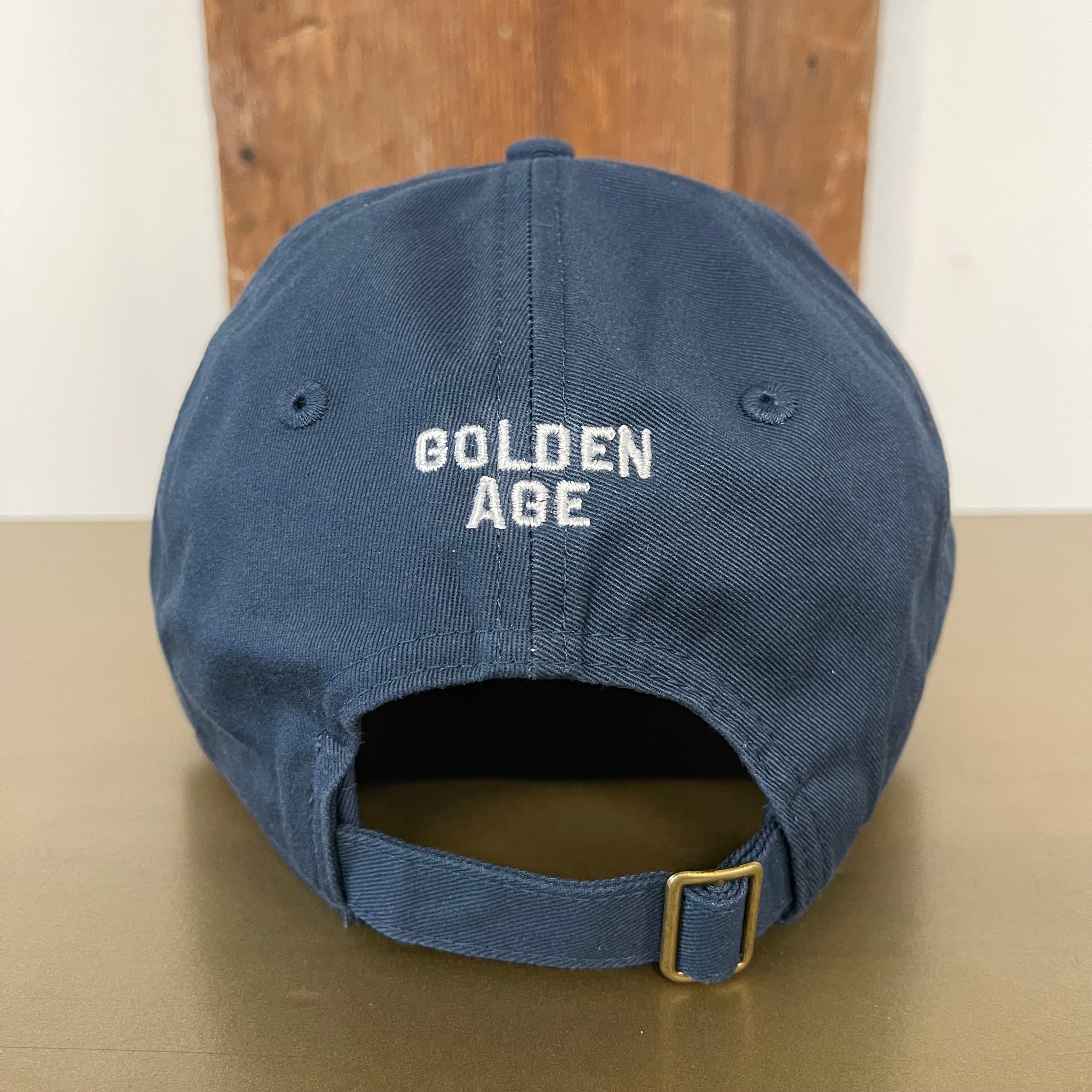 Featuring ERROL FLYNN in a white embroidery and custom GOLDEN AGE logo in the back on our navy cap.